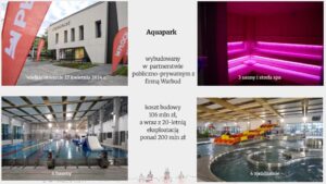 Skoro jesteśmy w na samym początku kadencji, trzeba przypomnieć o otwarciu Aquaparku. Nastąpiło to zaledwie tydzień po wyborach. Obiekt powstał w partnerstwie publiczno-prywatnym z firmą Warbud.