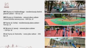 Na liście mamy m.in. modernizacje bloków żywieniowych w szkołach, remonty sal, powstawanie boisk i placów zabaw.