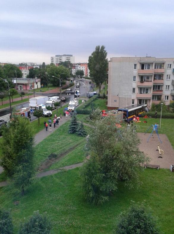 Nie wiadomo co było przyczyną wypadku. Na razie wiadomo tylko, że autobus przejechał między drzewami i uderzył w budynek mieszkalny Armii Krajowej nr 60. Wszyscy poza kierowcą opuścili pojazd o własnych siłach. Do uwolnienia jego potrzebna była interwencja straży pożarnej. Sześć z kilkunastu osób podróżujących autobusem zostało przewiezionych do szpitala, w tym kierowca, poza tymi osobami do szpitala zgłosiły się jeszcze cztery osoby. W mieszkaniu podczas zdarzenia były dwie osoby jednak ani im, ani żadnemu z mieszkańców bloku nic się nie stało.