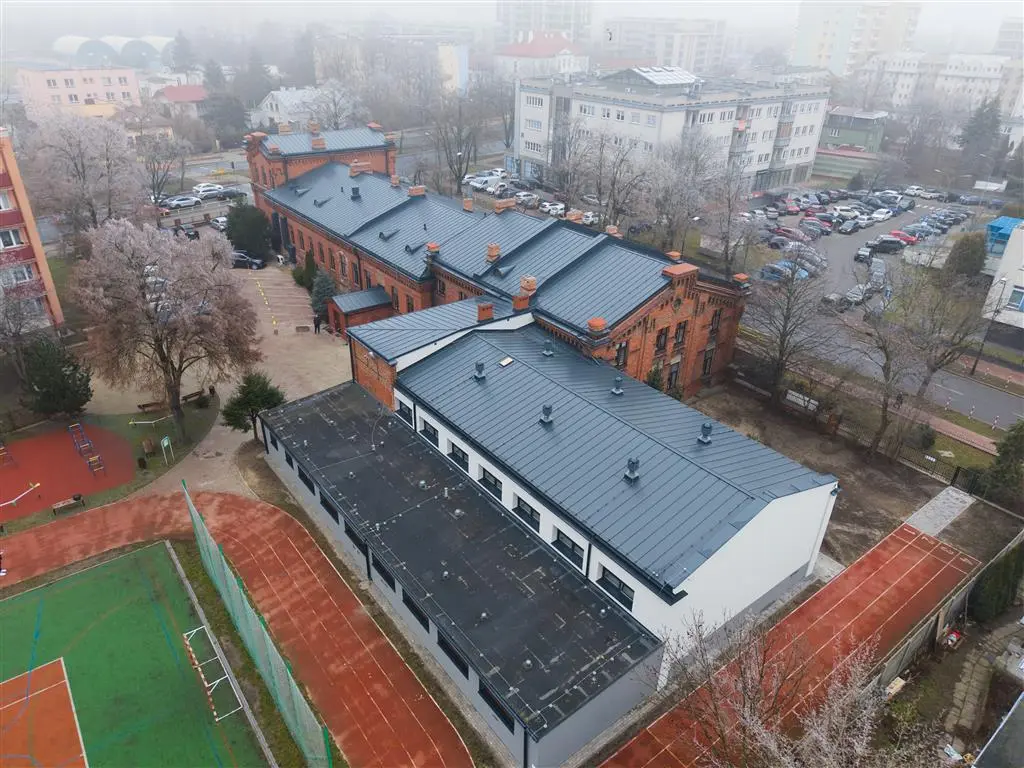 Płocki ratusz postanowił, że poprowadzi dwie inwestycje równocześnie – dojdzie do wspomnianego remontu sali gimnastycznej przy jednoczesnym wykonaniu szeregu innych prac związanych z częścią zabytkową szkoły. A było co robić… Należało wymienić pokrycie dachu, naprawić kominy i zabezpieczyć fundamenty (założyć izolację termiczną i przeciwwilgociową).