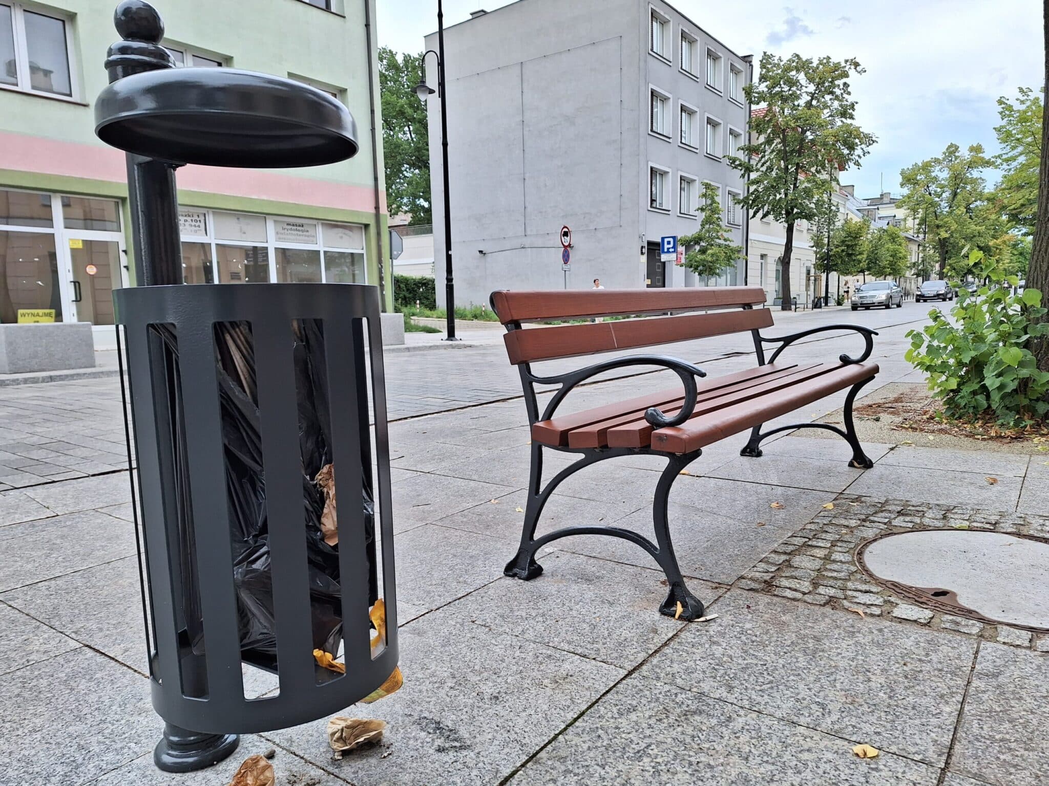 Ustawiono ławeczki i nowe śmietniczki, są stojaki umożliwiające przypięcie roweru. Pomyślano również o dużych donicach na roślinność.