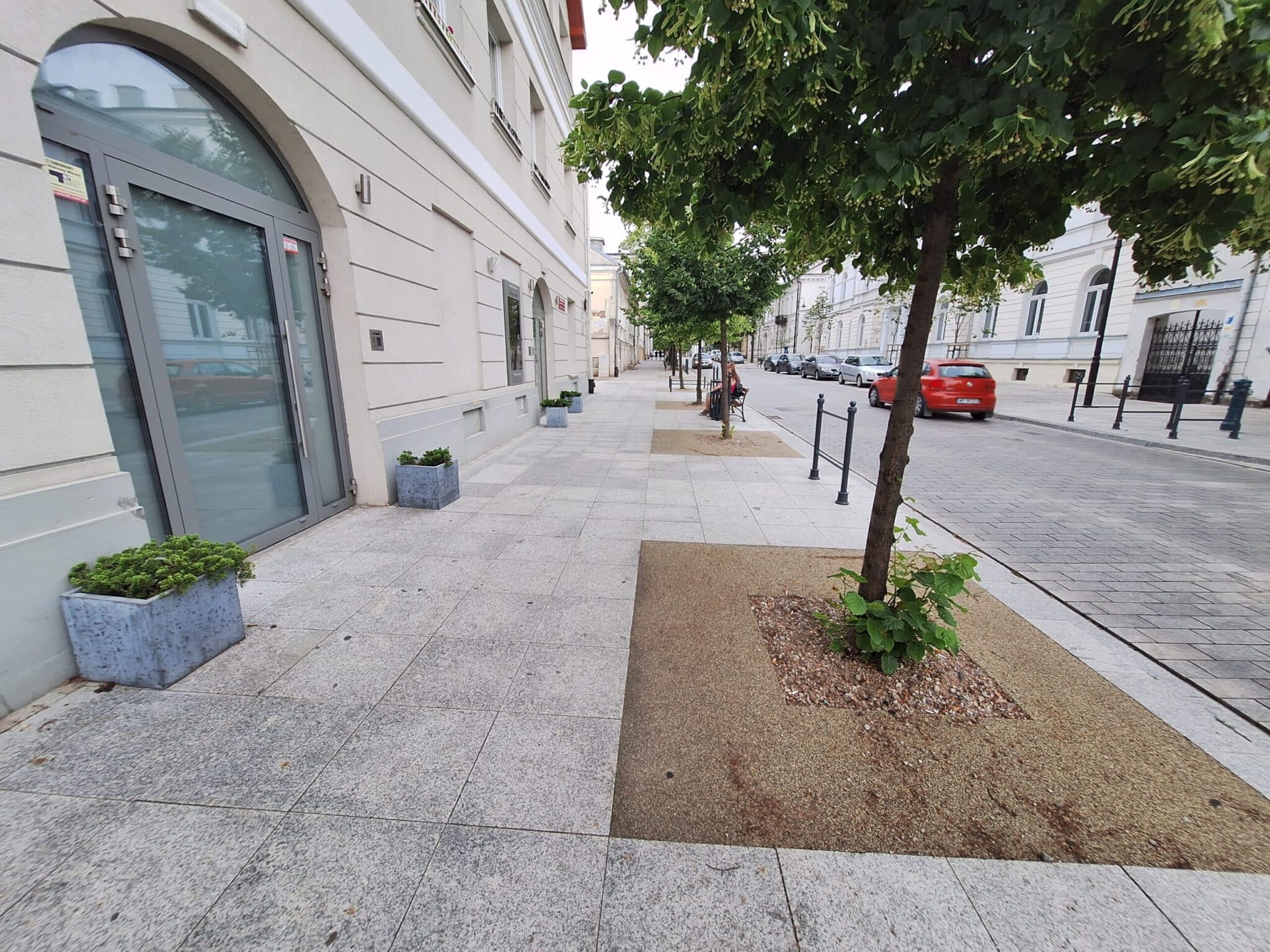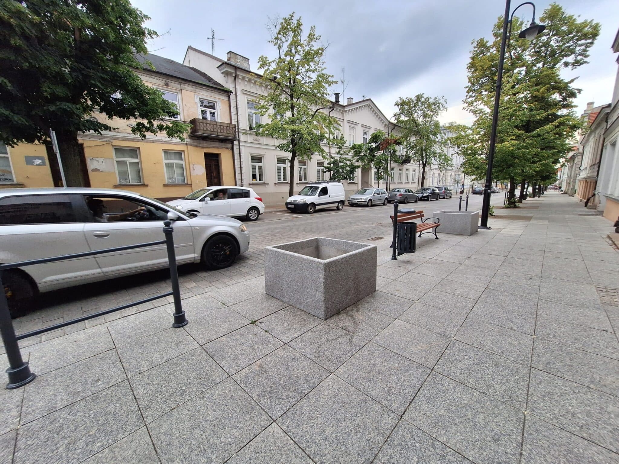 Niemniej donice na kwiaty wciąż są puste, dlatego proces „urządzania” ulicy wciąż trwa. Naszym zdaniem od donic i płotków o wiele lepsza w tym miejscu, przyjemniejsza z punktu widzenia pasażerów, byłaby ławeczka. I to w pewnej odległości od jezdni.
