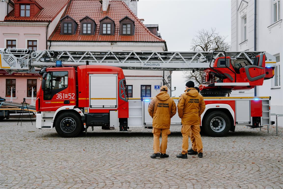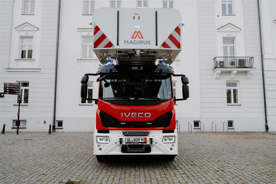 Nowy Magirus na podwoziu Iveco wyposażony jest w drabinę mechaniczną o wyjątkowej wysokości ratowniczej 42 m. Przęsło w niej jest łamane i może być wysunięte w bok na 19 m. Samochód zaprezentowano w miniony piątek przed płockim ratuszem.