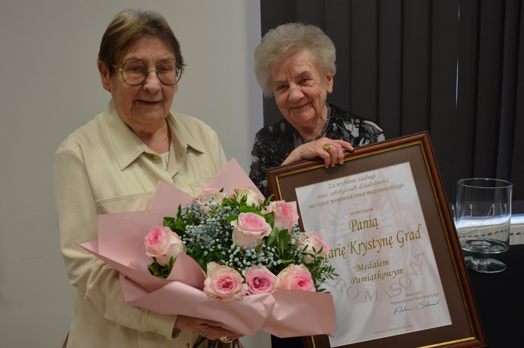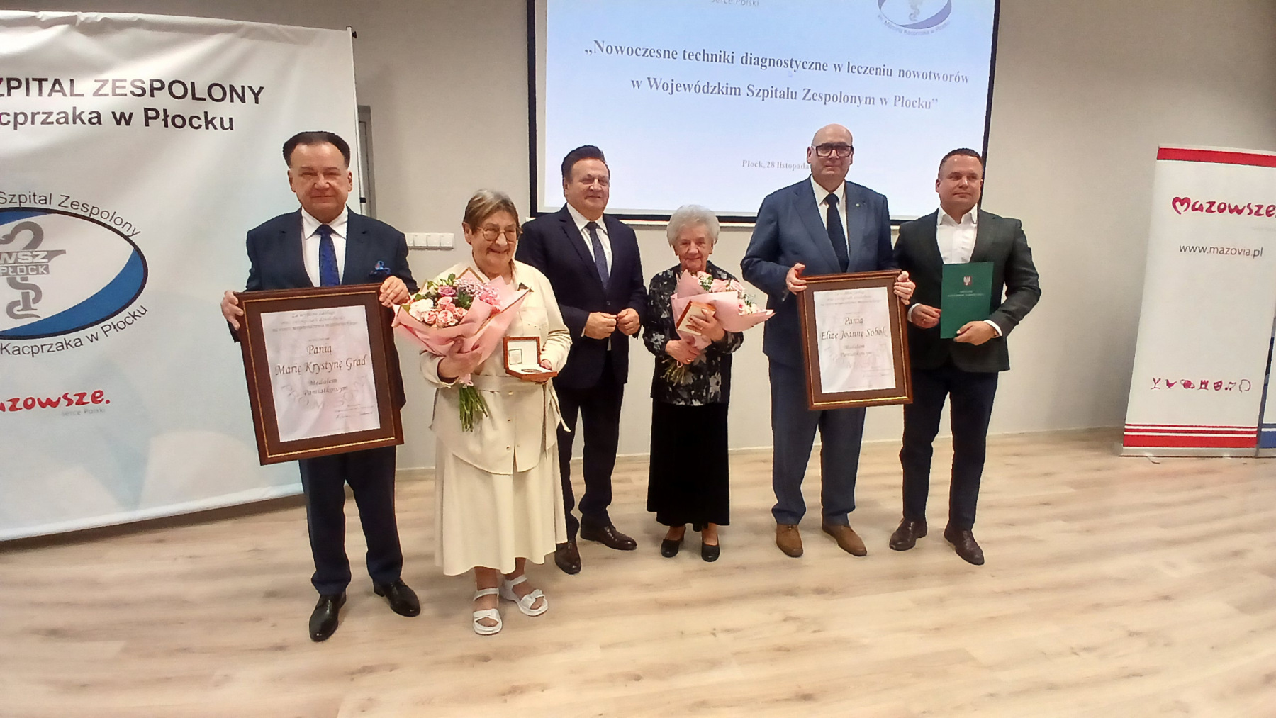 Za długoletnią służbę w ochronie zdrowia i pracę na rzecz drugiego człowieka Medale Pamiątkowe Pro Masovia, Adam Struzik wręczył dwóm wspaniałym lekarkom, które ze szpitalem są związane od początków jego powstania. Medale odebrały Eliza Joanna Sobok – specjalistka z zakresu neonatologii, oraz Maria Krystyna Grad – specjalistka II stopnia w dziedzinie chorób wewnętrznych. Co bardzo ważne, obydwie panie, pomimo swoich lat, które pozwoliłyby spokojnie odejść na zasłużoną emeryturę, nadal poświęcają się pacjentom i dzielą swoją wiedzą z młodszymi kolegami. Pani Joanna Eliza Sobok w tym roku ukończy 80 lat, pracuje na oddziale neonatologicznym płockiego szpitala. Z kolei Pani Maria Grad, która ukończy 90 lat pracuje jako lekarz medycyny pracy również w płockim szpitalu.