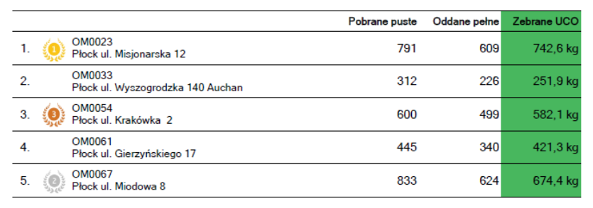 • 2 672 kg zebranego zużytego oleju kuchennego,
