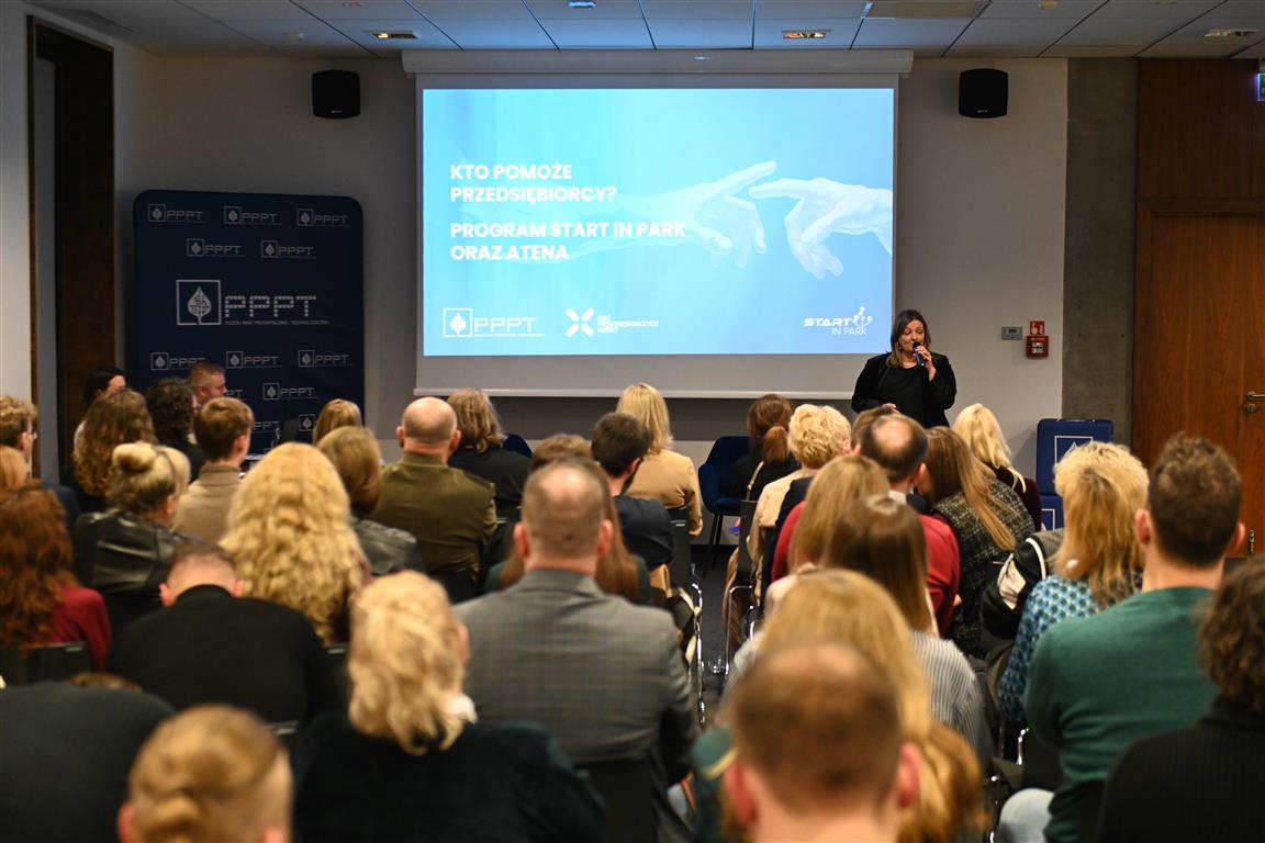 Następnie prezes Zarządu PPP-T S.A. Joanna Olejnik podkreśliła, że to człowiek jest w centrum uwagi w świecie, w którym codziennie słyszymy o sztucznej inteligencji i cyfrowych przełomach. W swojej wypowiedzi odniosła się do roli lidera – przedsiębiorcy, nawiązując do archetypu Ateny. Podkreśliła również, że IV edycja programu Start in Park to praktyczna rama rozwoju, która oferuje uczestnikom warsztaty, indywidualny mentoring, dostęp do specjalistów, a przede wszystkim wartościową społeczność.
