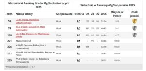 221. miejsce ↑ – Akademickie Liceum Ogólnokształcące (w 2024 r. – 227., w 2023 r. – 196.)