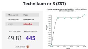 51. miejsce ↑ – Technikum nr 3 (w Zespole Szkół Technicznych, 2024 r. – 64., 2023 r. – 94.)