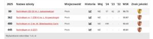 48. miejsce ↑ – Technikum nr 2 im. Marii Skłodowskiej Curie, czyli Elektryk (w 2024 r. – 56., w 2023 r. – 84.)