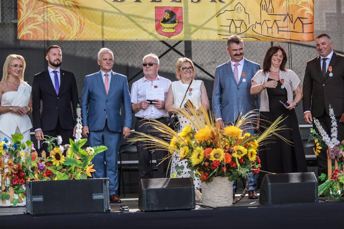 Czas dożynek, to również czas szczególnych wyróżnień. W tym roku medale „Zasłużony dla Gminy Bielsk” otrzymali: Jacek Grzelak, Monika i Adam Staszewscy, którzy w tym roku pełnili zaszczyty starostów dożynek oraz Wioletta i Wojciech Majdowscy.